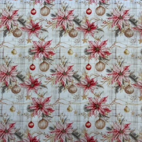 Quilting Fabric: Pink Christmas Pointsettia – Barcode # AK165 sold per 25 cm